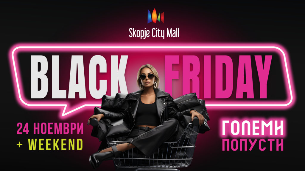 На 24 ноември (петок) во Skopje City Mall започнува Black Friday шопинг лудилото! Skopje City Mall нека биде местото кое сите вие љубителите на шопингот сигурно нема да го одминете. Од 10:00 часот продавниците на омилениот трговски центар ќе обезбедат специјални попусти за сите купувачи во рамките на акцијата Black Friday.