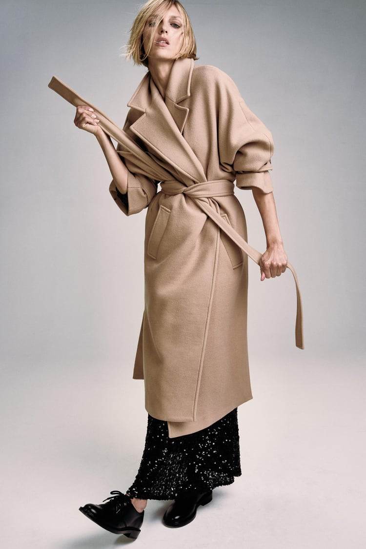Овој капут во боја на камила изгледа така софистицирано благодарение на неговата возвишена волнена изработка и кројот со појасот.