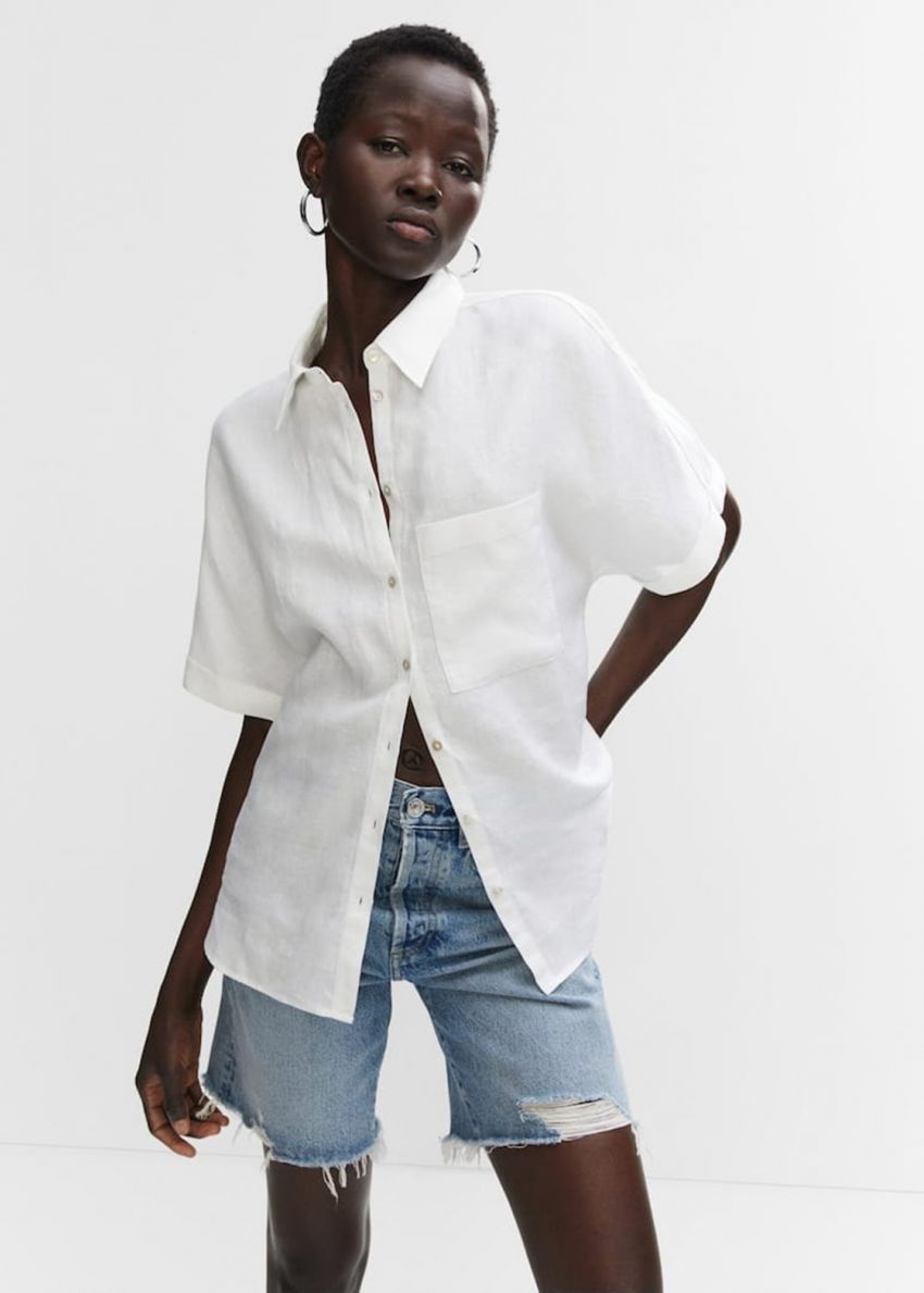Белата ленена кошула оди апсолутно со секоја модна комбинација, а можете да ја носите насекаде, од работа до вечерно излегување или на плажа.