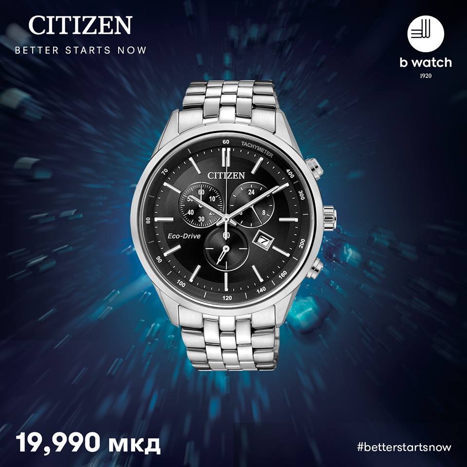 Стремејќи се да останеме единствени во Македонија коишто не само што го „мерат времето“ туку и остануваат во чекор со него, чекорејќи кон нашиот стогодишен јубилеј, стануваме официјални дистрибутери на овој бренд – великан во светот на часовниците. Со тоа, ја збогатуваме традицијата на b watch 1920 со долгата и докажана традиција на Citizen.
