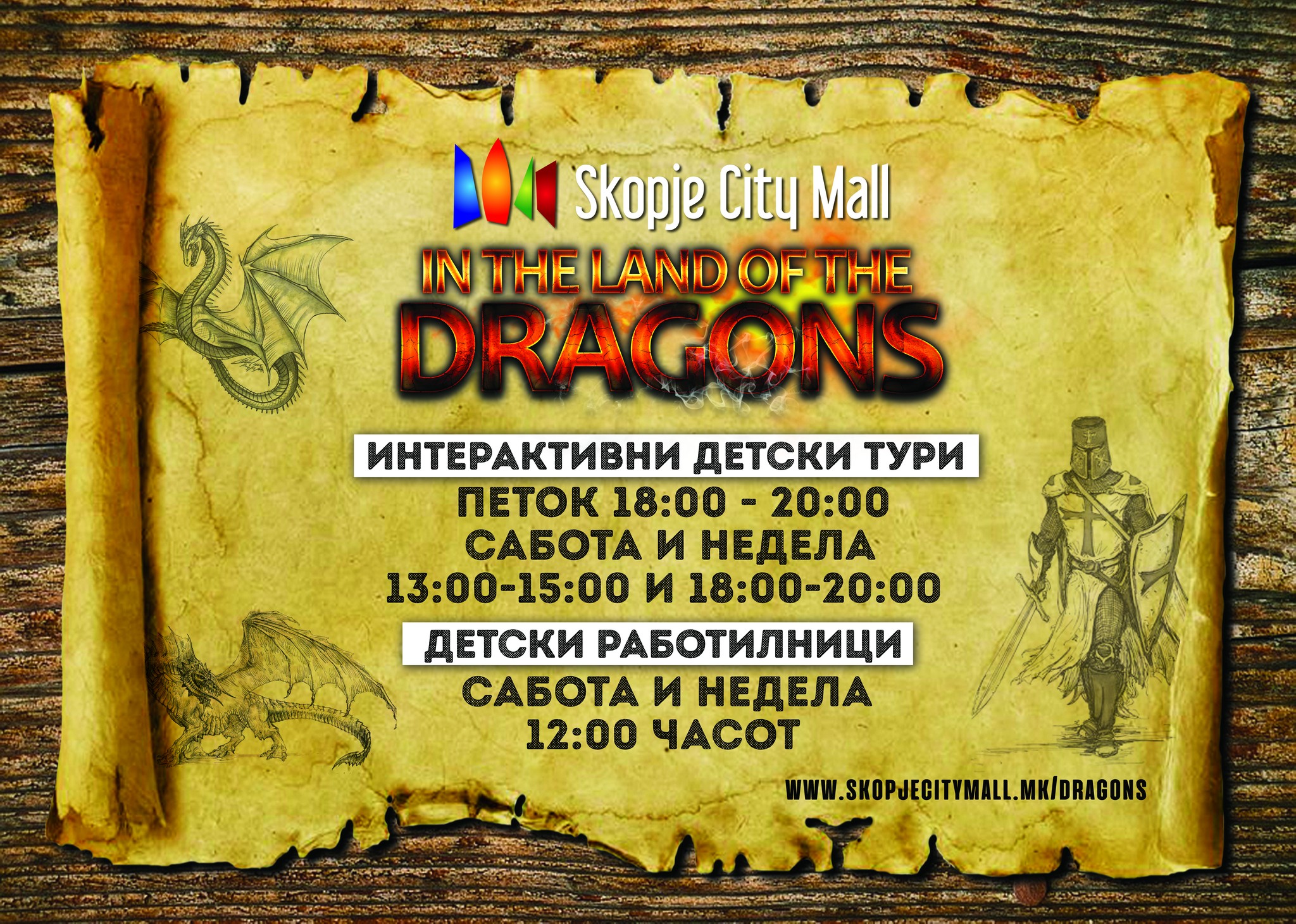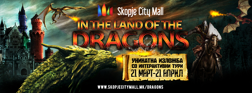 После турнејата од неколку европски градови, од 21. март до 21. април, уникатната изложба “Во земјата на змејовите” стигнува и во Скопје. Сите посетители на Скопје Сити Мол ќе можат да ја видат и да ја доживеат оваа несекојдневна изложба, која што е исклучително ретка прилика.