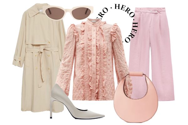 Додадете тренч мантил Mango, панталони и чевли од Zara и бели додатоци на целата приказна, како шлаг на торта.