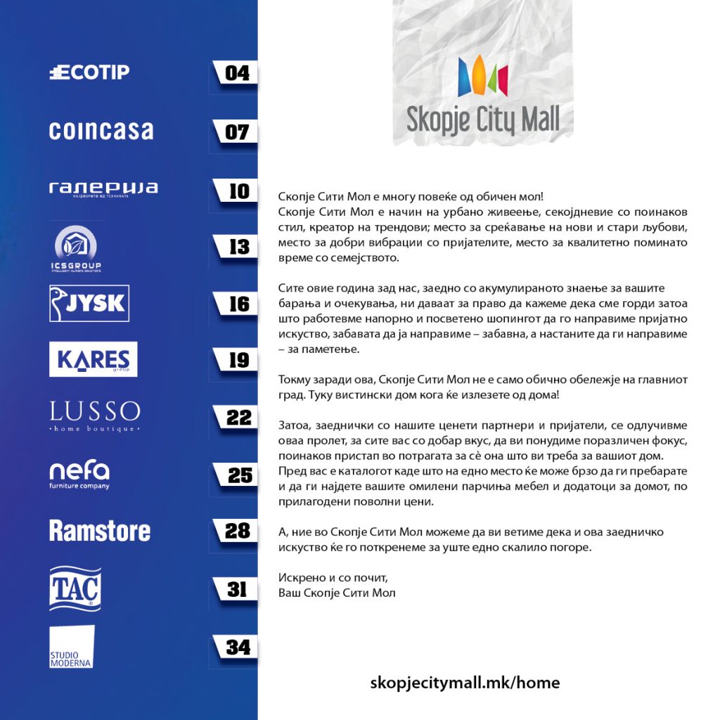 Токму заради ова, Скопје Сити Мол не е само обично обележје на главниот град. Туку вистински дом кога ќе излезете од дома!