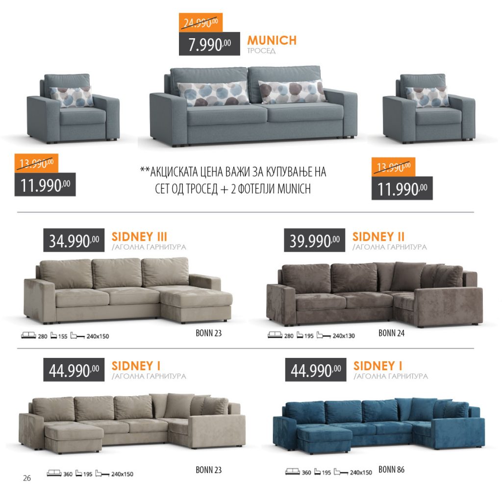Пред вас е каталогот каде што на едно место ќе може брзо да ги пребарате и да ги најдете вашите омилени парчиња мебел и додатоци за домот, по прилагодени поволни цени.