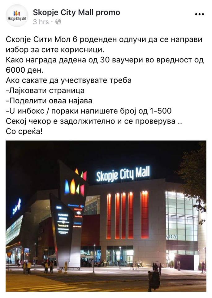Единствена официјална фејсбук страница на Скопје Сити Мол е оваа!