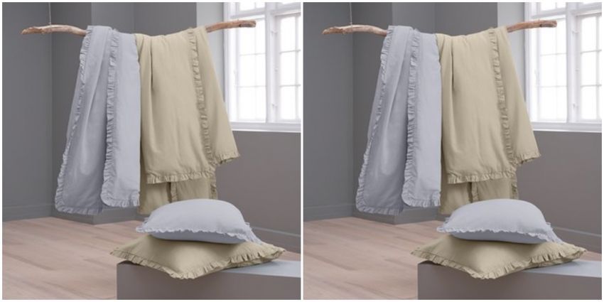 Оваа постелнина можете да ја најдете во две нијанси, односно чиста бела и песочна боја.