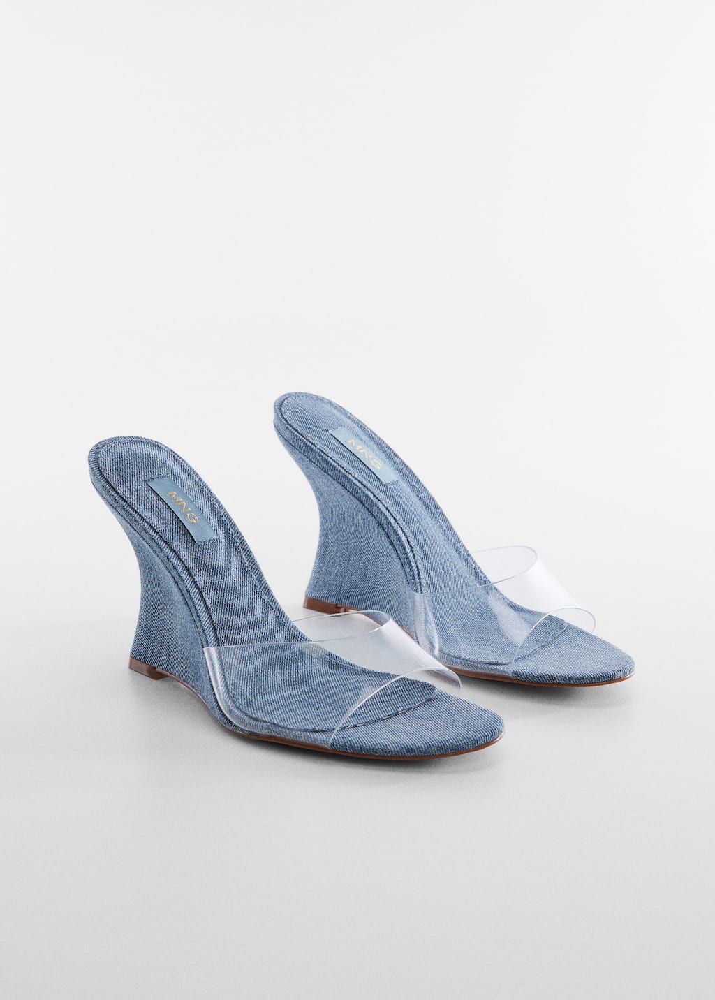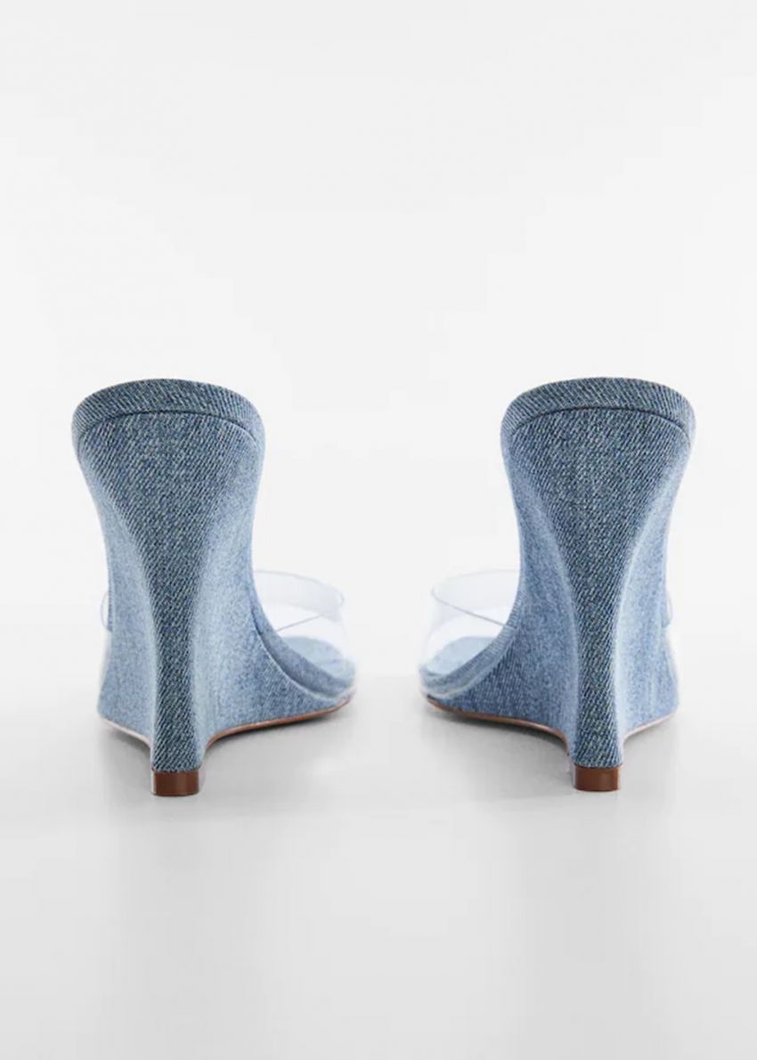 Имено, станува збор за папучи со висока полна потпетица изработена од тексас, а она што ги прави овие папучи толку посебни е транспарентниот ремен од винил.