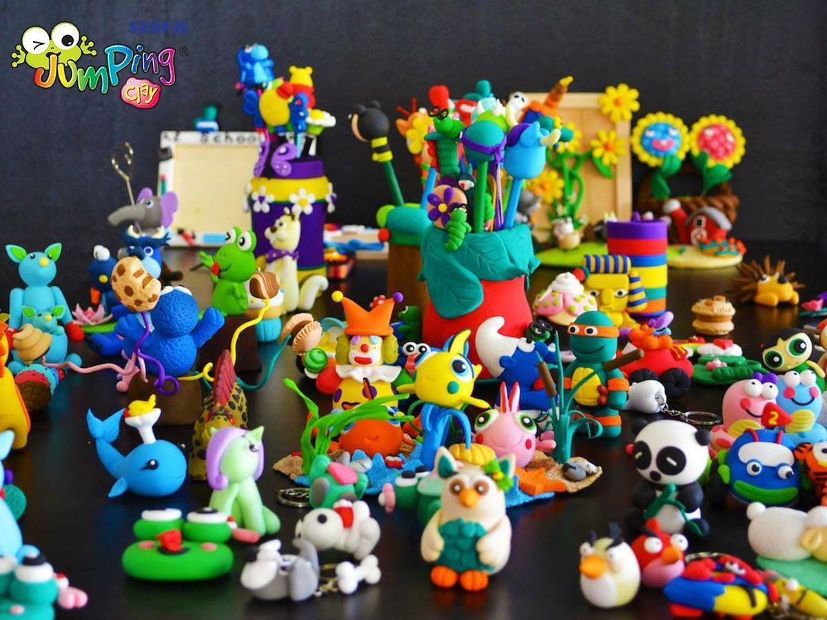 Разбудете ја Вашата фантазија со Џампинг Клеј полимерската глина, која не прави неред и се суши на воздух. Нашата едукативна глина со мирис на јасмин, мека, лесна, комплетно нетоксична има нежна текстура како никоја друга глина. Совршена е за деца, тинејџери и возрасни. Достапна е во 9 основни бои, кои беспрекорно се мешаат помеѓу себе, притоа создавајќи бесконечен спектар на бои и нијанси.