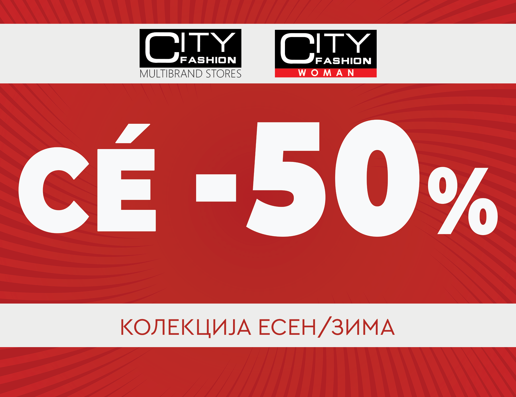 Се -50% во City Fashion и City Fashion Woman30.01.201930.01.2019Категорија: Блог Tweet Последно намалување на колекцијата есен/зима: ➡️➡️➡️ СЀ -50% ‼️ Не пропуштајте! #CityFashion #CityFashionWoman #Discount#SkopjeCityMall Tweet