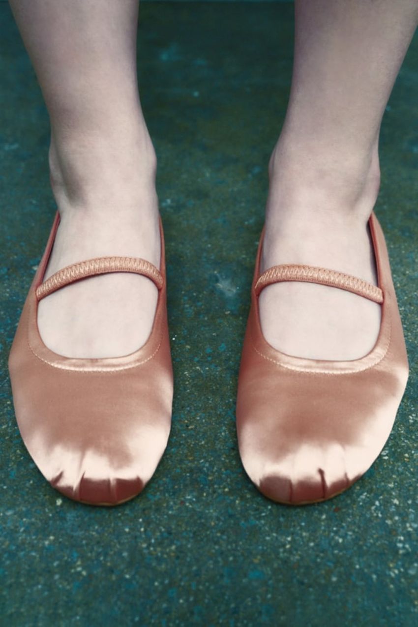 Еден модел од овие најдовме во Zara, но и во Mango. Имено, Zara има сатенска верзија на вакви балетанки, додека Mango нуди кожна верзија.