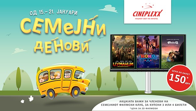 Во периодот од 15. јануари до 21. јануари, за време на Cineplexx Семејните денови погледнете ги филмовите* по намалена цена.