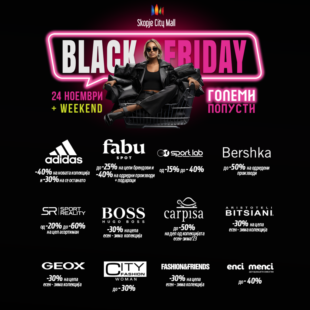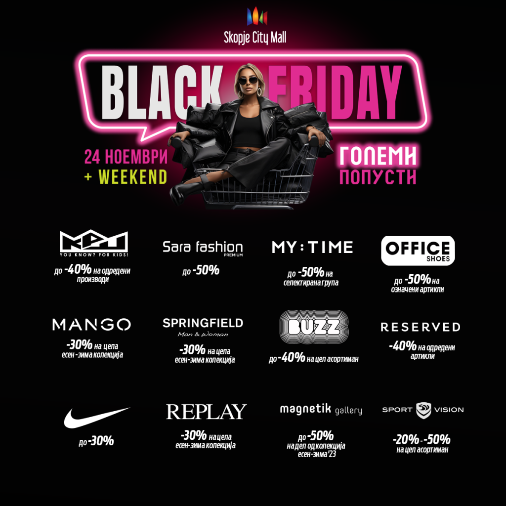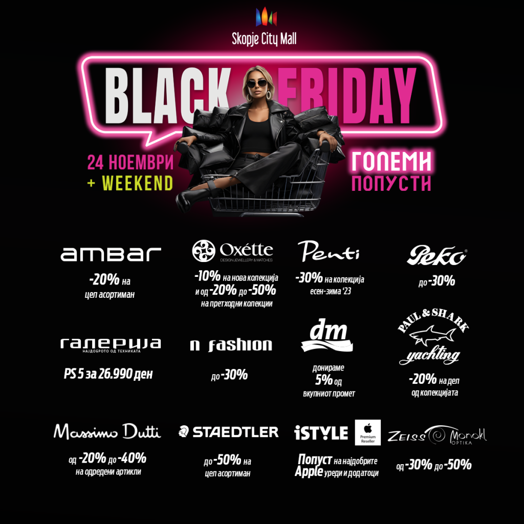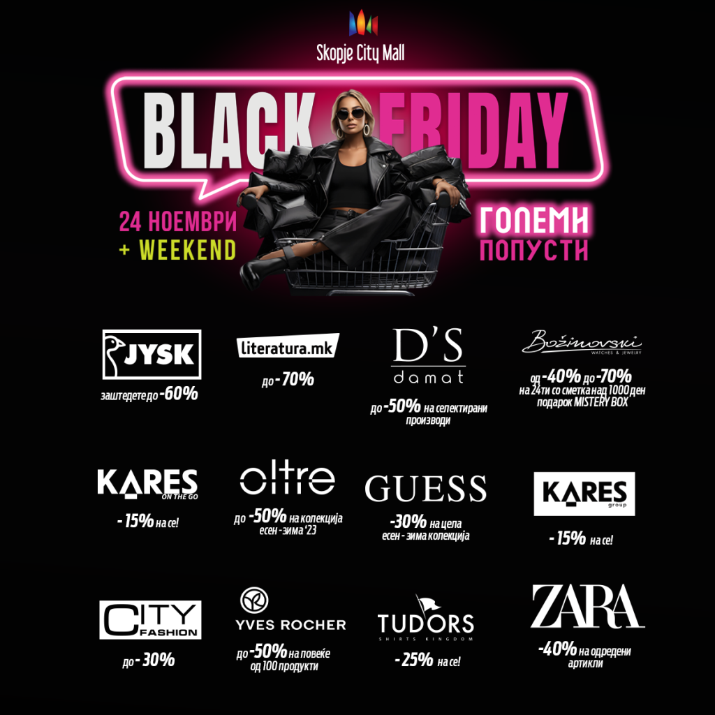 Сите попусти на едно место! Black Friday во Skopje City Mall!23.11.202323.11.2023Категорија: Блог Tweet Tweet