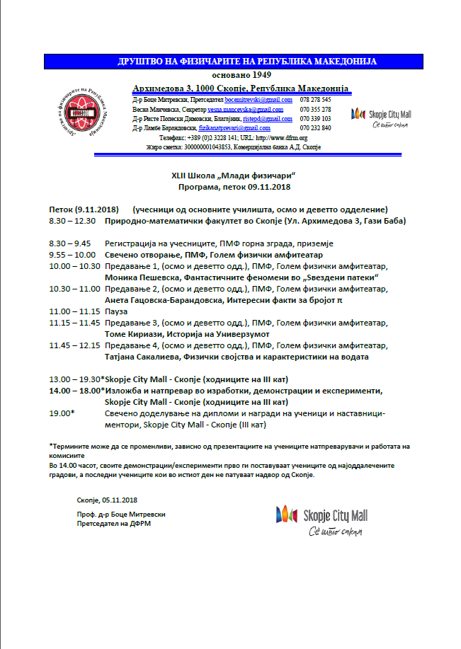 Во рамки на настанот ќе се одржи и 42. школа „Млади физичари“ на која учениците ќе се натпреваруваат во изработки, демонстрации и експерименти.