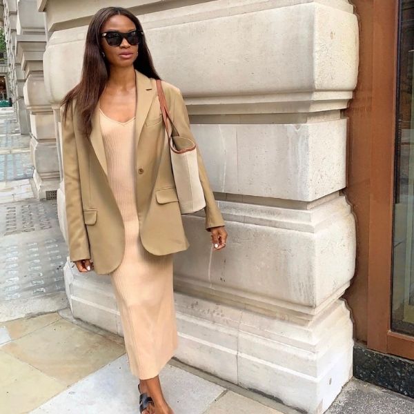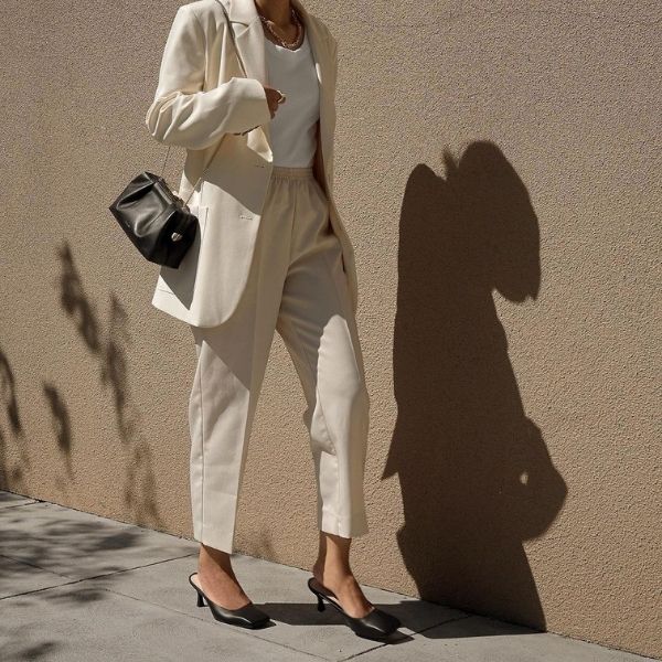 Блејзер + панталони во иста нијанса + папучи
