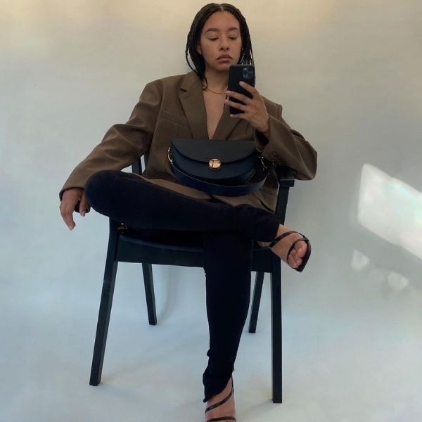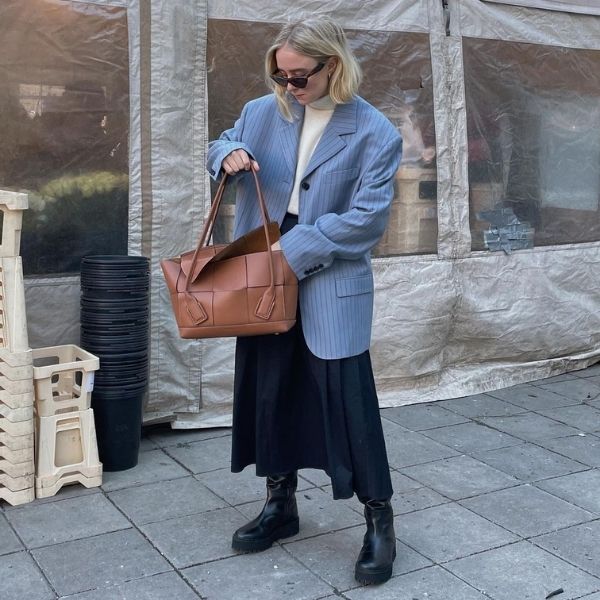Блејзер + трикотажа + чанта со големи димензии