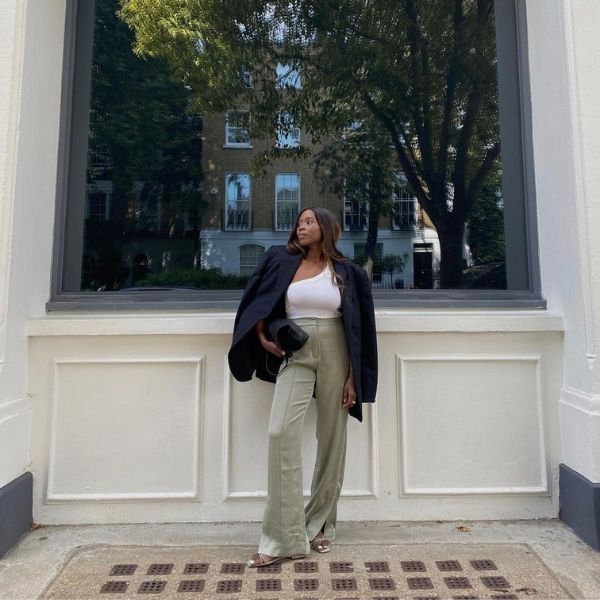 Блејзер + црни панталони + сандали