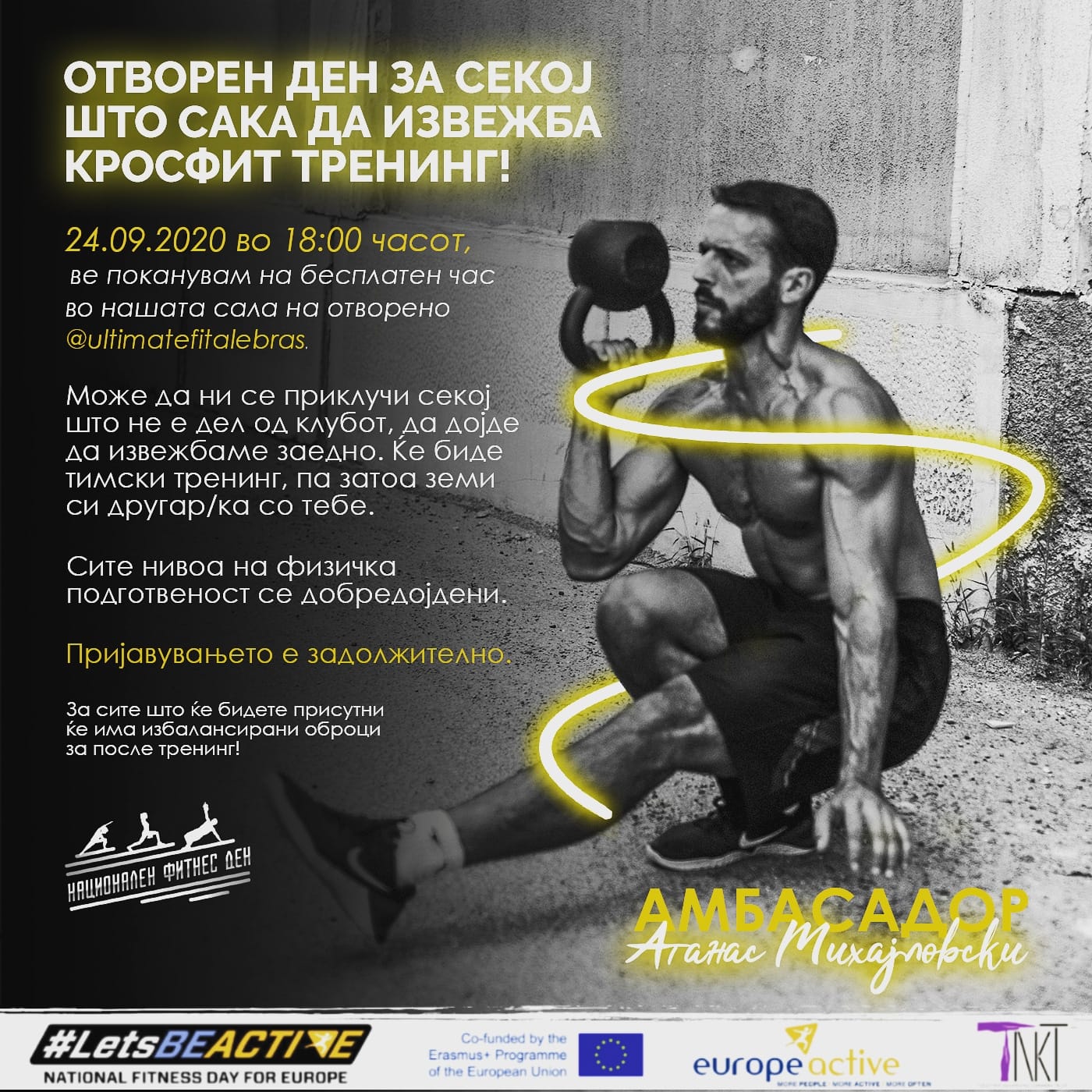 Атанас Михајловски организира свој отворен ден за секој оној што сака да проба еден кросфит тренинг на отворено! Тренингот е за сите нивоа на физичка активност. Повеќе за овој настан може да прочитате подоле.