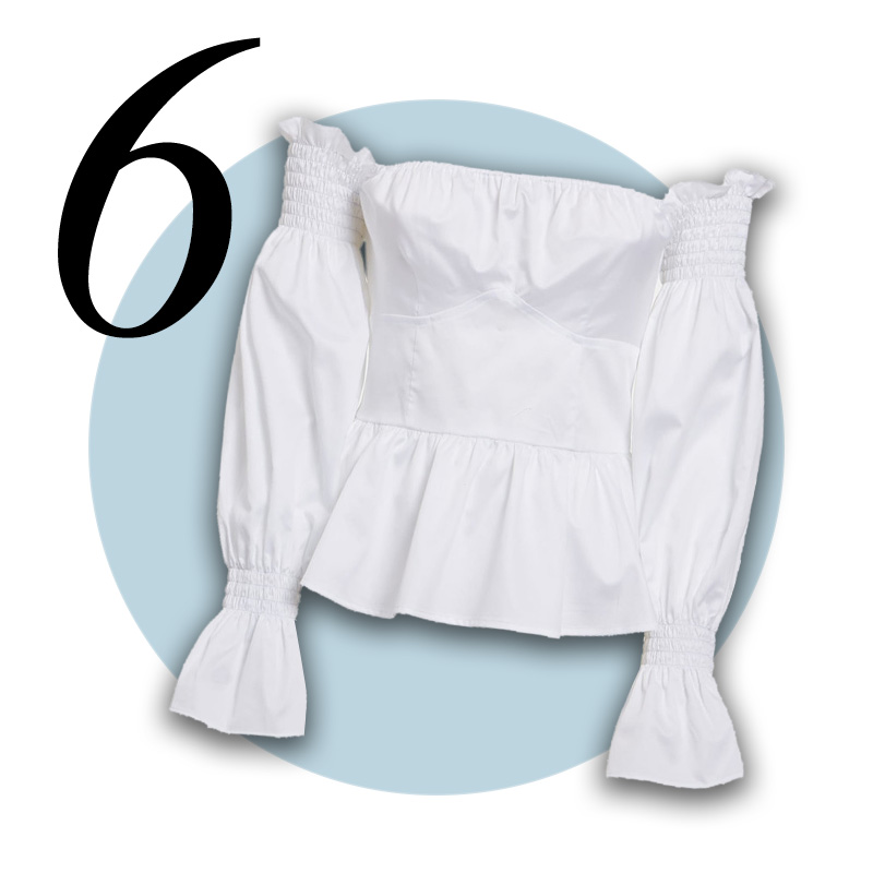 Блуза со отворени раменици е совршена за градската врева и за одење по тесните улички на морските градови.